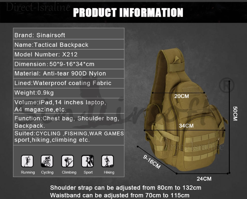 מתאים לפעילות: רכיבת אופניים, דיג, משחקי מלחמה, ספורט, טיולים, טיפוס וכו,