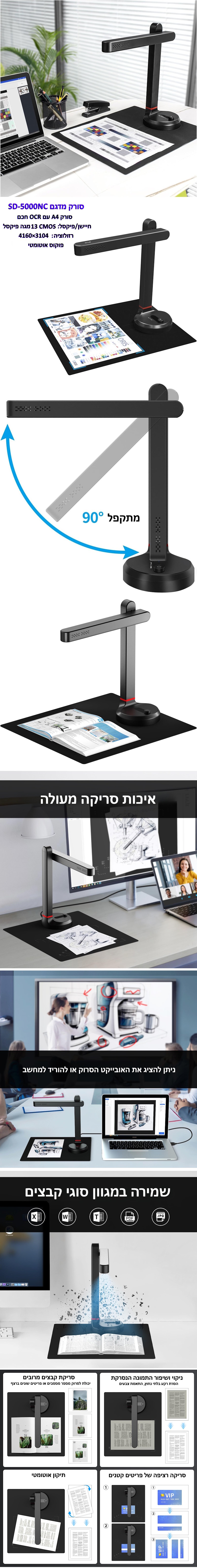 סורק חכם לספרים ומסמכים עד גודל A4 D6601 SD-5000NC פוקוס אוטומטי *במלאי מיידי*
