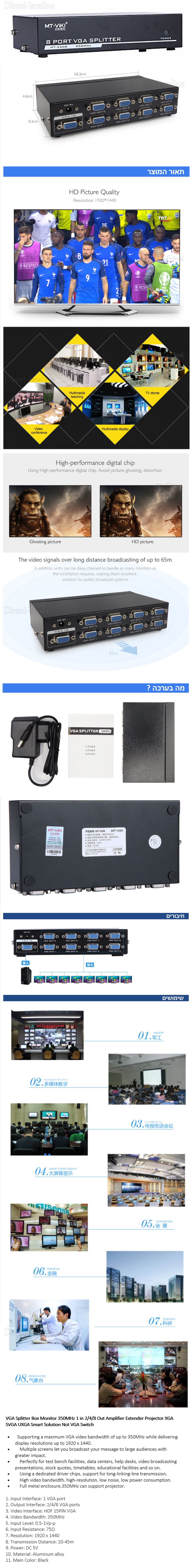 מפצל VGA מקצועי אקטיבי מוגבר ל 8 מסכים 350MHZ *במלאי מיידי* Zoom