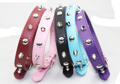 קולר ניטים קטומים מעור אמיתי לכלב.