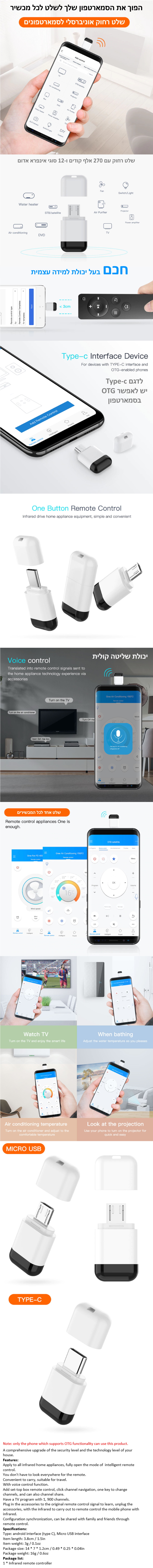 שלט אוניברסלי חכם לכל סוגי המזגנים/מכשירים באפליקציה לאנדרואיד ואייפון D4136 *במלאי מיידי* Zoom