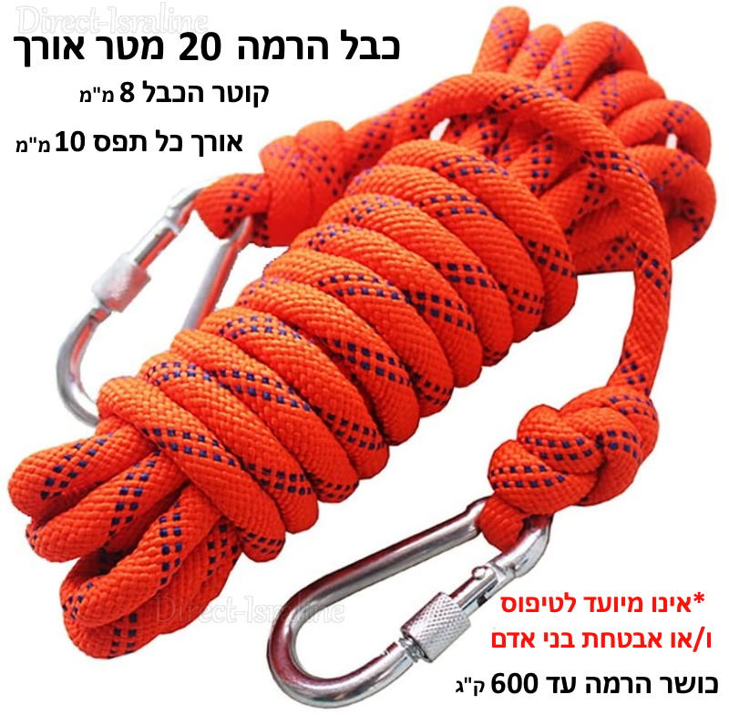 אינו מיועד ולא מומלץ לשימוש ככבל אבטחה לטיפוס הרים וקשירה לאבטחה אישית בעבודה/שהות במקומות גבוהים