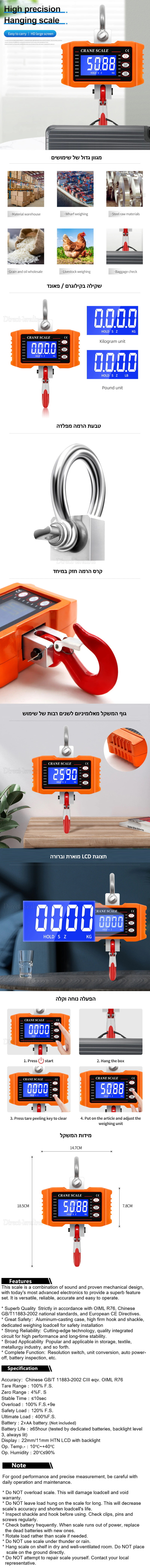 לשקילת ציוד כבד עד ל-1000 ק"ג וברמת דיוק של 500 גרם